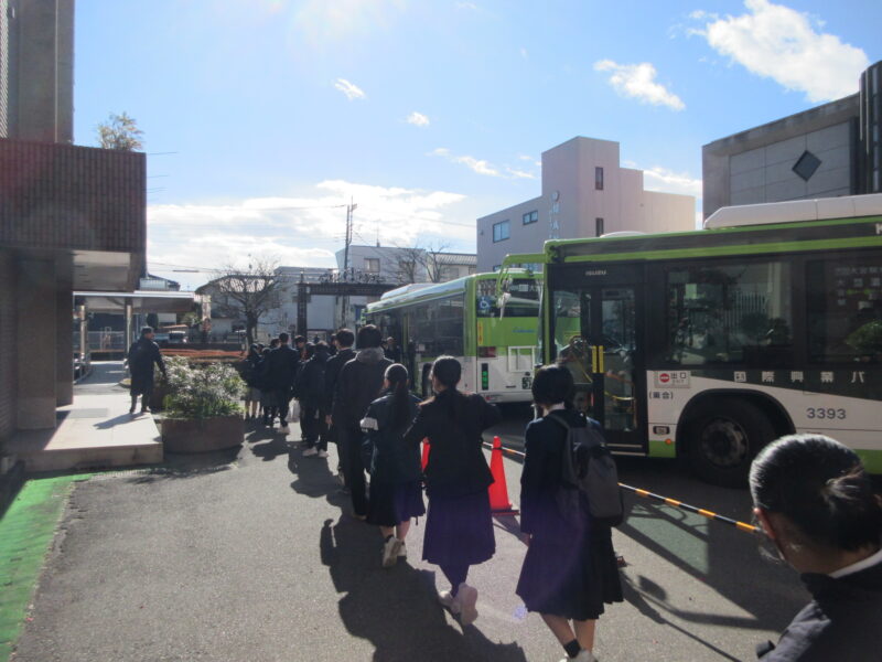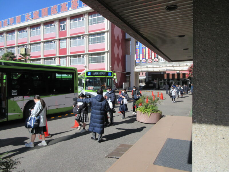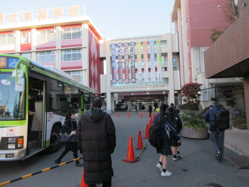 12時半過ぎ、無事終了。昼になって寒風が強くなりましたが、退出する皆さんの表情はとても晴れやか、にこやかでした。同じ学校どうしで話しながら帰る受験生も…。