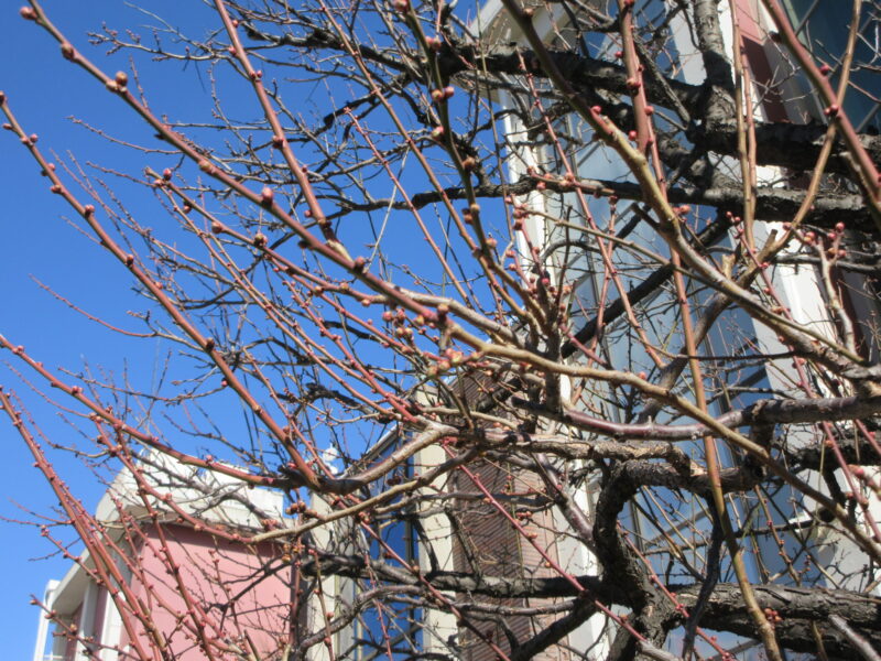 ↓ 先日まだ固いとみていたウメの蕾、冷え込みに負けず確実に膨らんできています