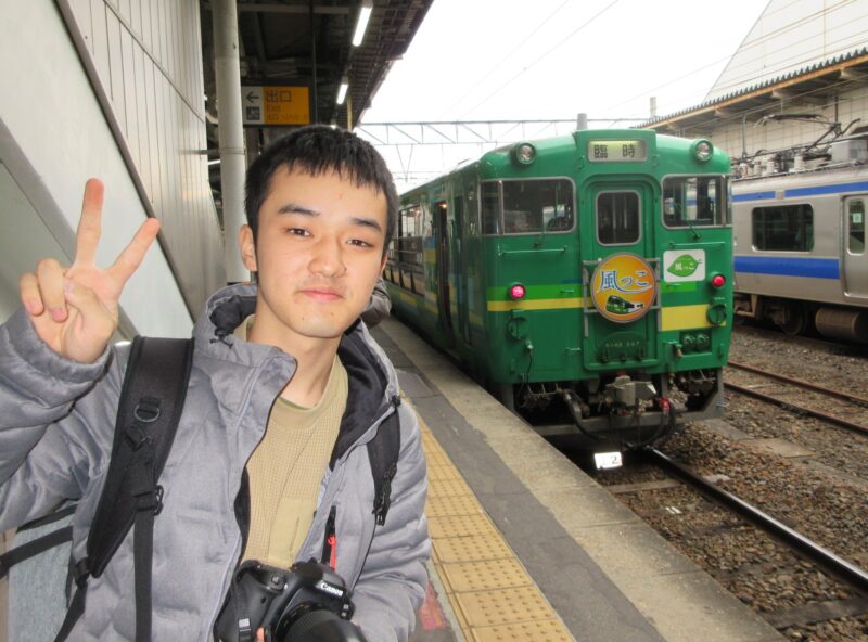 ↓ 目当ては隣ホームから出発する臨時ディーゼル列車でした。Tさんのカメラと撮影の腕が光ります