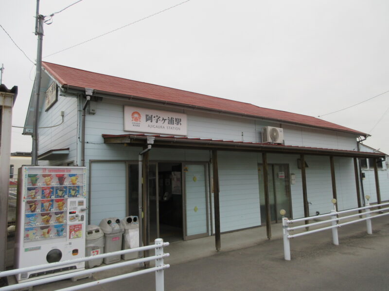 いっぽう「那珂湊」といえば漁港。駅から那珂湊港までは徒歩10分ほど。観光の車で大渋滞の駅前道路を横目に、私たちも小1時間ほど"お魚市場"を冷やかしたのち(大混雑でした)、再び列車の人となって終点「阿字ヶ浦あじがうら」へ。