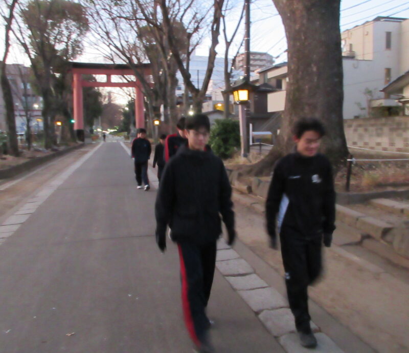 朝は近くにある大宮氷川神社までウォーキング/ジョギング。6:20出発、気温0℃。頬を刺す寒さに部員たちも目が覚めたことでしょう。