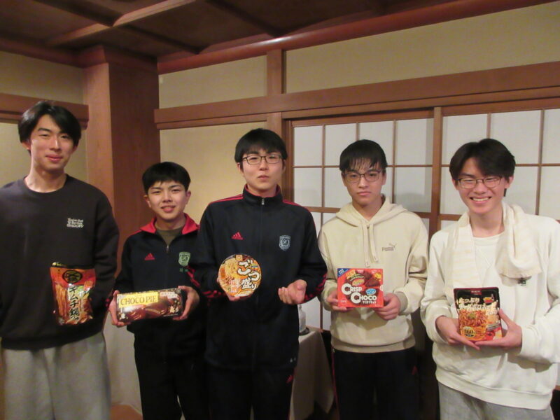 ↓ 顧問A教諭セレクトのユニークな各賞。あくまでもお土産、合宿中は食べない!