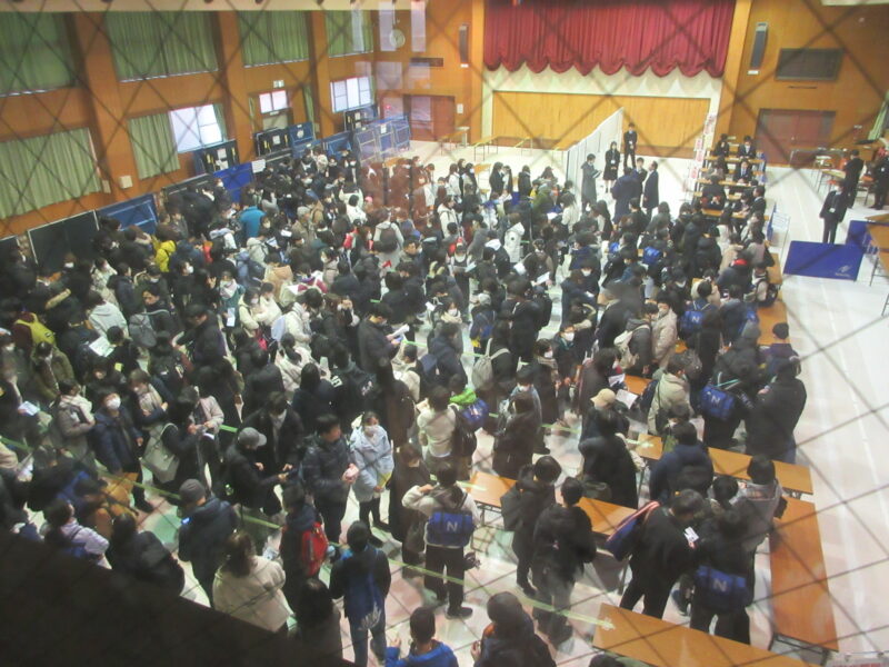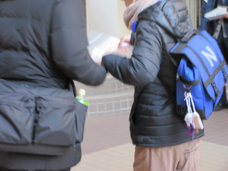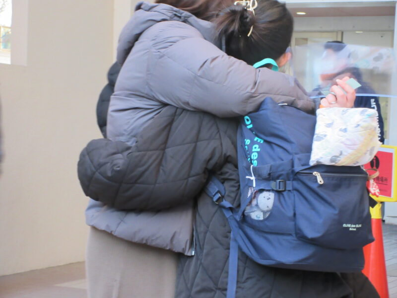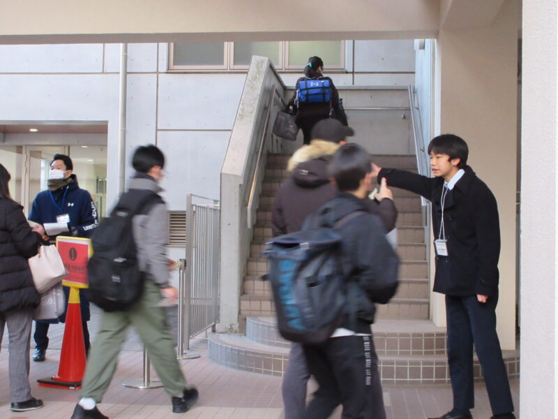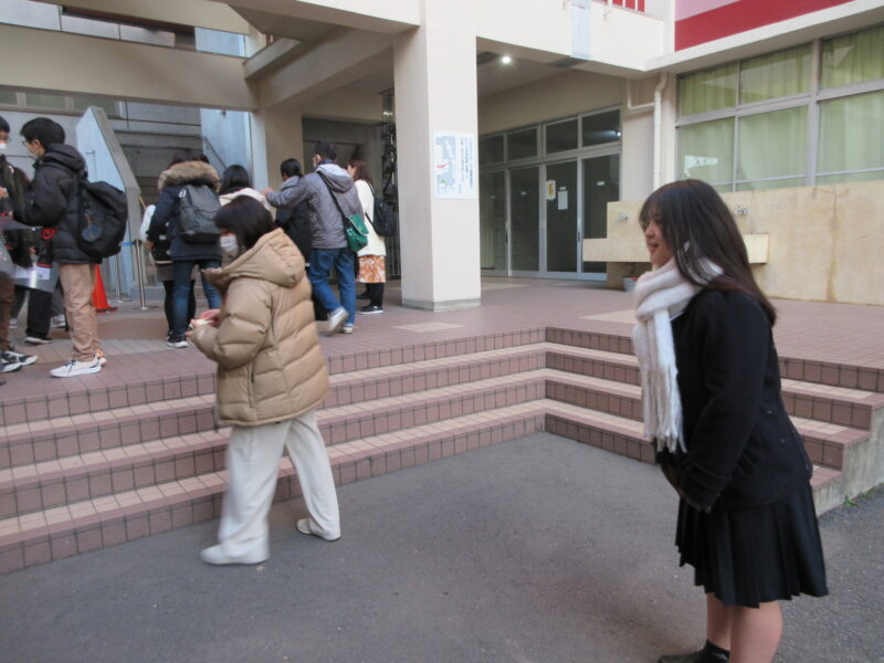 ↓ 保護者の方に見送られ、受験生は入試教室へ