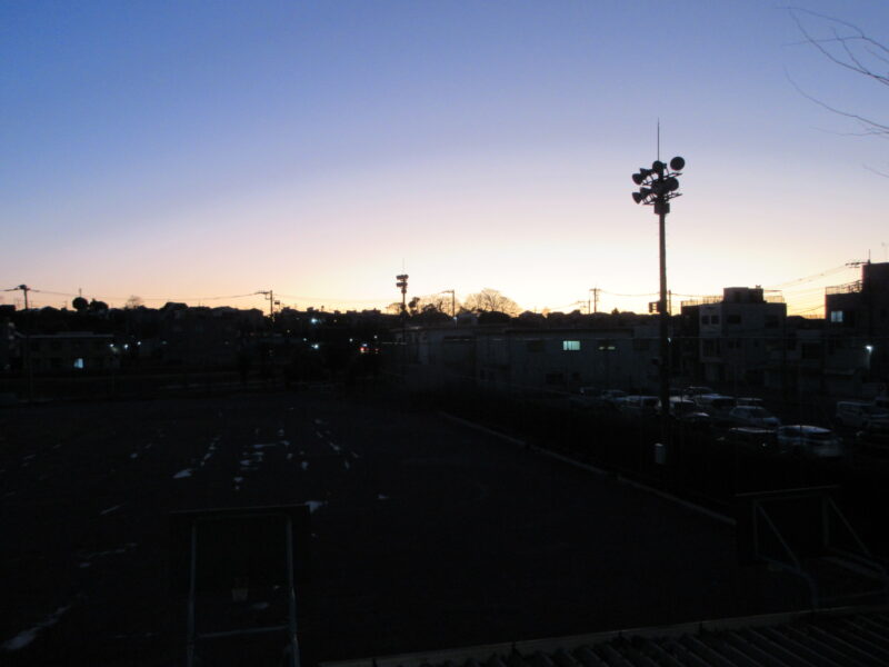 ↓ 校長室に入り6:30。明けるぞと言わんばかりの曙光