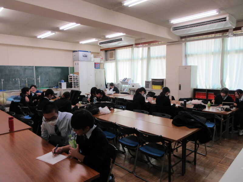 ↓ 説明会実行委員の生徒たちも試験終了時の誘導仕事に備え休憩中…いや勉強している、さすが!