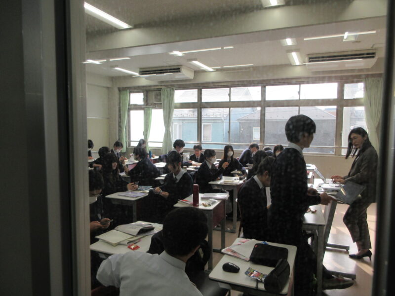 ↓ 生徒端末・携帯(特別許可)などを使って入力。10時過ぎ、ほぼ終わったようす
