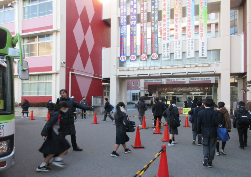 ↓ 直通バスもフル回転。徒歩帰宅の受験生にもちょうどよい暖かさとなりました