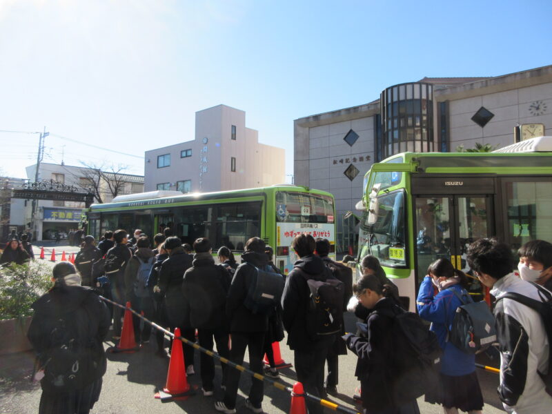 ↓ 直通バスもフル回転。徒歩帰宅の受験生にもちょうどよい暖かさとなりました
