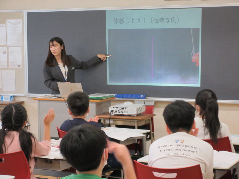 ↓ 理科は映像を見せながら「振り子がこことここに来るとき皆で手を叩いてみよう(パチン!)」「タイミングが全員で揃わないよね?それはね…」と物理の法則をユニークに解説