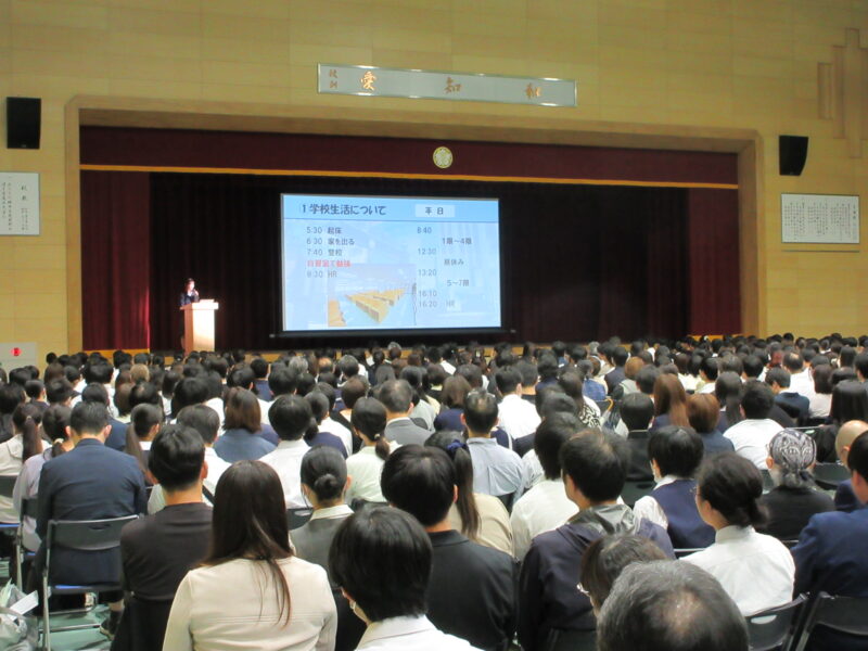 いつものように校長(教育理念)・進路指導部長(進路指導)・教頭(入試説明)に加え、今回の学校生活説明は、高2のSさんに依頼。