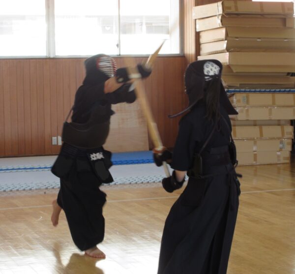 ↓ 他部との兼部で頑張る高1Nさん、技を受けるは高1で剣道を始めた高1Kさん