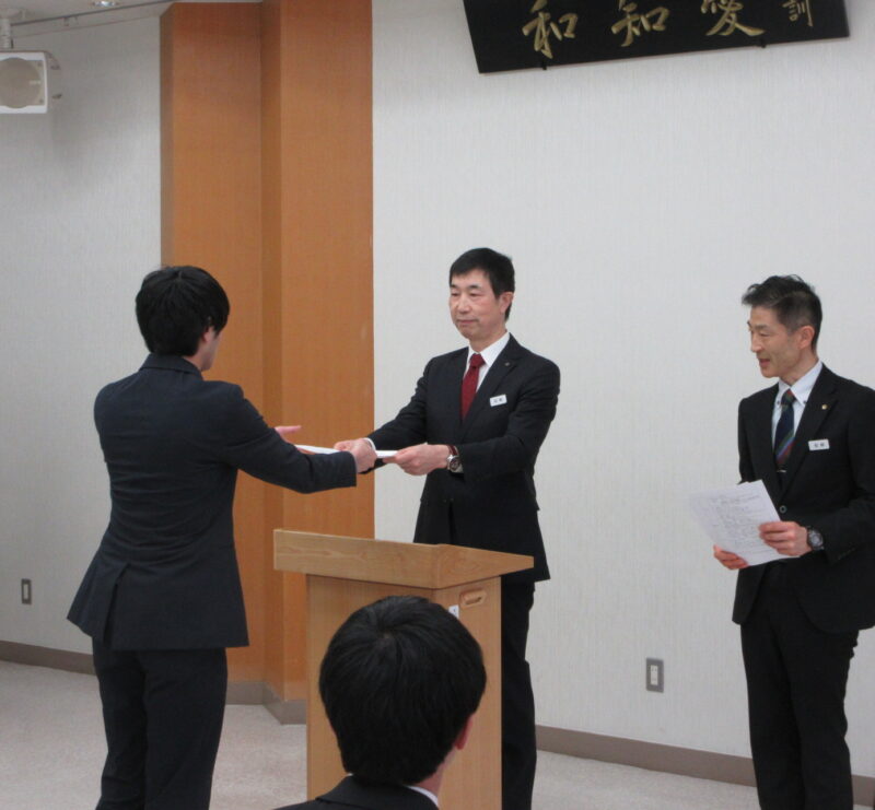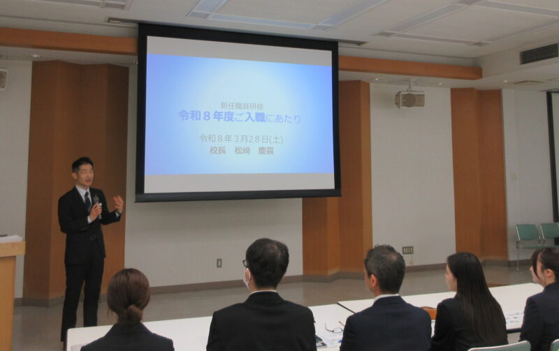 28日(土)午前、春期講習の一方で、令和8年度採用職員の入職式を実施しました。4月から新新たに9人の教諭が着任予定です。