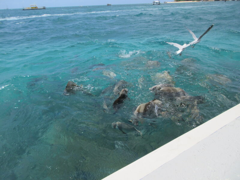 ↓ ボートのスタッフが少し餌をまいただけで… ※餌付けはスタッフのみ、量と回数も厳格に決められているとのこと