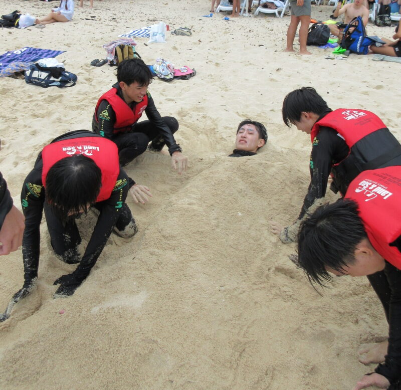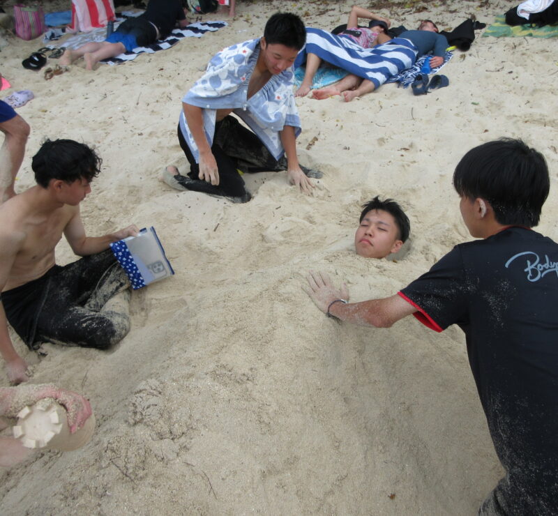 ↓ 意外に男子は「寒い!」などとすぐ陸に上がってきては砂蒸し風呂を開始