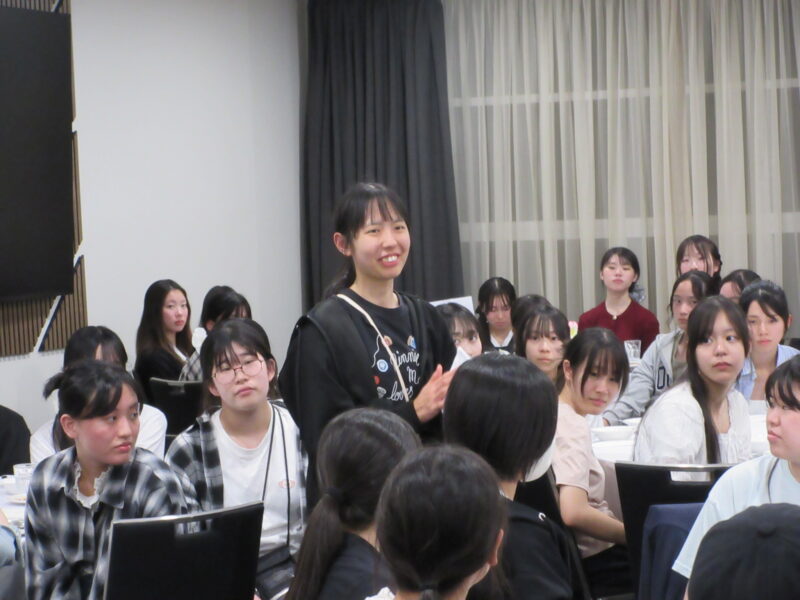↓ 研修委員のSさん(2組)「ホストファミリーとの団らんが心に残っています」「陰で支えてくださった添乗員の皆さんありがとうございました」と立派なあいさつで締めくくり