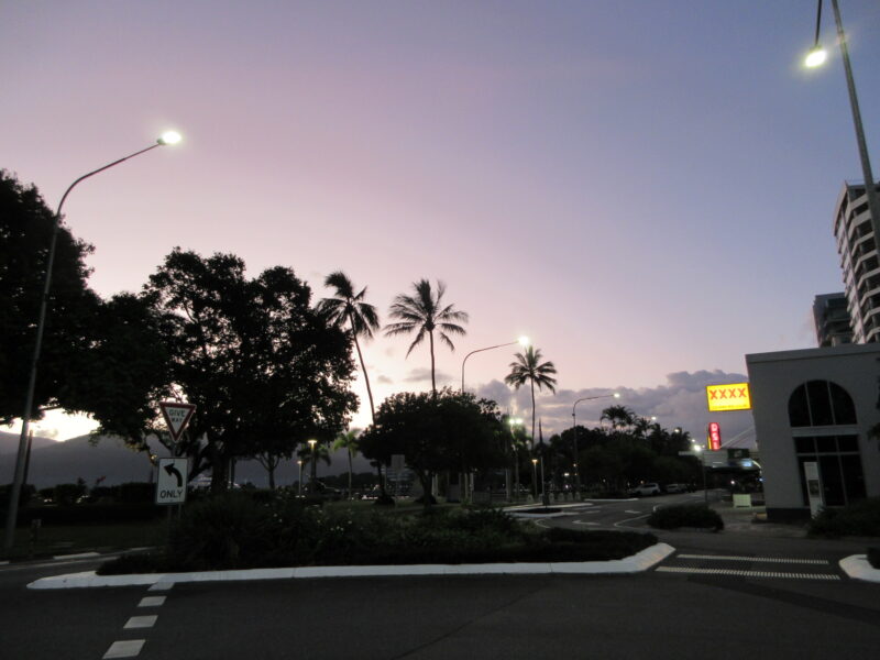 ――17時過ぎ、薄暮のケアンズ市街に戻り、つかの間のお土産購入・市街散策、そしてホテルで最後の夕食です。