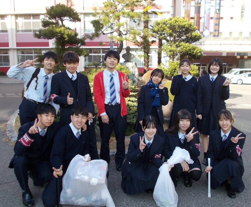 答案返還が午前で終わった放課後、高校生徒会プラス有志生徒が「学校清掃プロジェクト」を実施。高校生徒会の公約でもある「校内外の清掃活動を通じて、他学年・コースの交流機会にする」目的で、生徒会1年生のSさん中心に、有志合わせて15名ほどが集まりました。