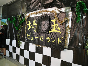 出店名からは想像がつかない2年10組では、もぐら叩き、射的、ストラックアウトで得点をとりました。埼玉県の名産品やご当地キャラがピューロランドと混ざった不思議な空間でした!