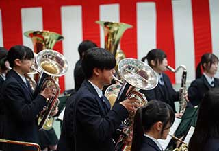 開式前には和太鼓部や吹奏楽部の歓迎演奏も行われました。