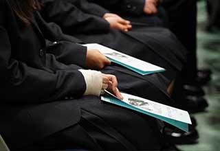 入学式が始まると、新しい制服につつまれながら、どこか期待と不安の入り交じった表情で参加していました。