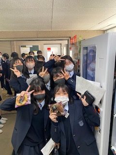 おなじみのものとはいえ、いつも生活する学校に設置されるとなると、生徒も興味津々(写真の後ろ、大行列にお気づきですか…)。