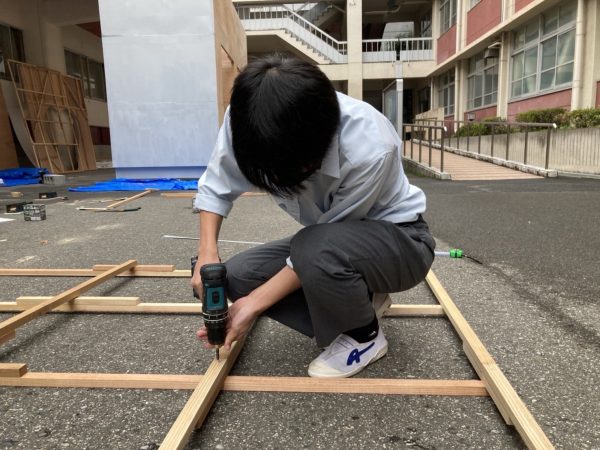 門だけではなく、お越しいただいた皆さんに楽しめるような建築物も、分担して作成中。今年はどんな作品になるのか、ご来校の際には是非、じっくり見てみて下さい。