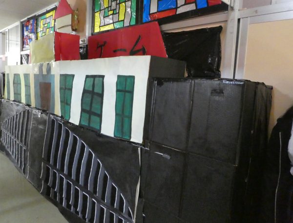 他のクラスでは、トロッコに乗って的当てゲームを楽しむ出店がありました!宇宙をモチーフにしていて、装飾やマトの形が惑星やエイリアンなど宇宙が感じられるものになっていました。縁日と言っても、こんなに色々なものができるとは!!