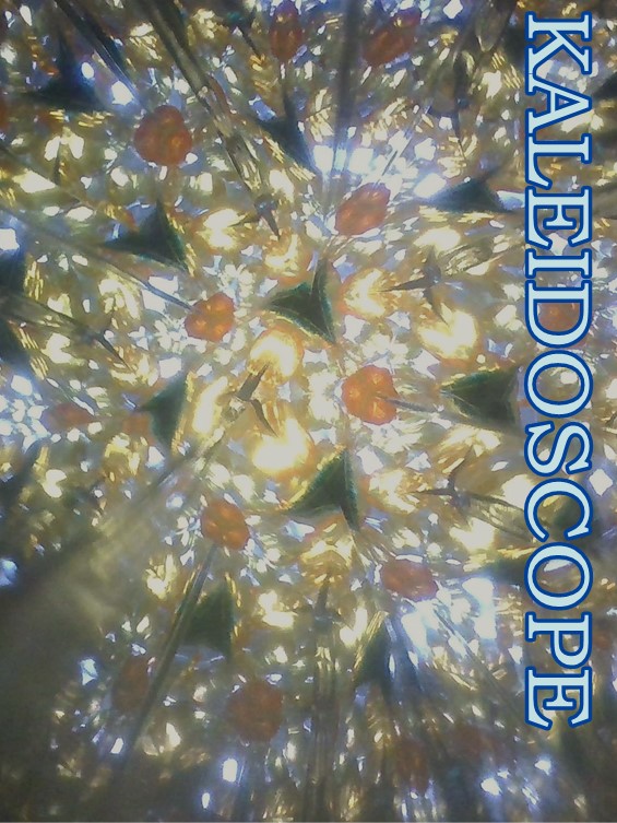 部誌の題『kaleidoscope』は、英語で「万華鏡」という意味。1年生のSさんが、家にある万華鏡の中身の写真を何種類か撮ってきてくれました。部員全員での会議で表紙に採用する写真を選び……