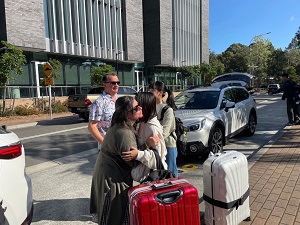 朝、車で大学に送ってもらった後、別れの挨拶を交わしています。多くの生徒たちにとっては、初めてのホームステイ、初めての異文化交流。その体験を支えてくれたファミリーへの感謝は一言では表せません。