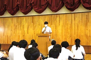 Eさんは、ハンドボールを本校入学後に始めたそうです。3年間、まじめに練習を続けた成果が発揮されました。先日、壮行会をおこないました。みんなで応援しています。Eさん、おめでとうございます。