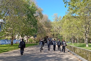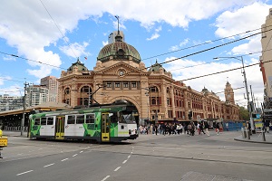 こちらはメルボルンの街のシンボル、フリンダース・ストリート駅。1854年に完成したオーストラリア国内初の鉄道駅だそうです。趣のある駅舎に見入る生徒もいたようです。