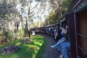 そして、メルボルン郊外のパッフィンビリー鉄道へ!20世紀初めから走るオーストラリア最古の蒸気機関車からの眺めを満喫しました!びっくりしたのですが、脚を出して乗ることができるのだそうです!!