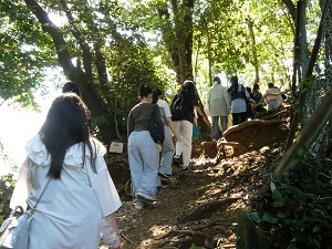 化粧坂切通しを通って鶴岡八幡宮まで行く道は、山登りと変わらない道のりで大変です。
