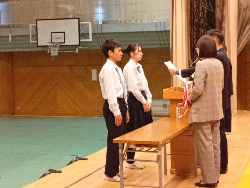 ↓そして、いよいよ結果発表です。指揮・伴奏の優秀者、合唱の優秀クラスが表彰され、笑顔で仲間をたたえる姿が見られました。