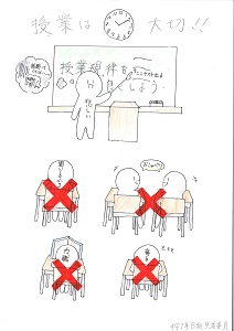 審査に加わった校長からは「時間のない中で、素晴らしいポスターを作成してくれたことに感謝をします。力がこもっている作品がたくさんありました。今回のマナーアップポスターで、皆さんの生活がより良いものになると期待しています。」というコメントがありました。