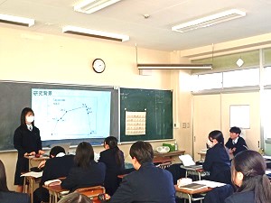 中3、高1は個人で自分の興味のあるテーマを深め、発表していました。