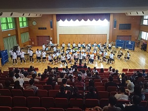 最後にはアンコールをいただき、「新宝島」と、中学吹奏楽部ではおなじみの「銀河鉄道999」を演奏しました!「銀河鉄道999」は卒部した先輩たちと一緒に演奏し、特に盛り上がりました♪
