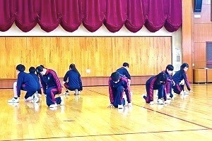 中高一貫部の冬の体育と言えば…ダンス!!毎年冬に、グループごとに振付・構成・演出に工夫を凝らしたダンス発表会が行われます。今年度からは高2男子も加わりパワーアップ!(昨年度までは、高2は女子のみがダンスを実施していました。)