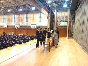各種表彰が行われました。今年度も多くの部活動や各種コンテストで賞状を頂きました。来年度もみんな、頑張っていきましょう!