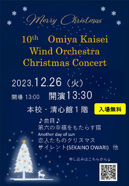 === このイベントは終了いたしました === この度、高校吹奏楽部のクリスマスコンサートを開催させてい(続きを読む)