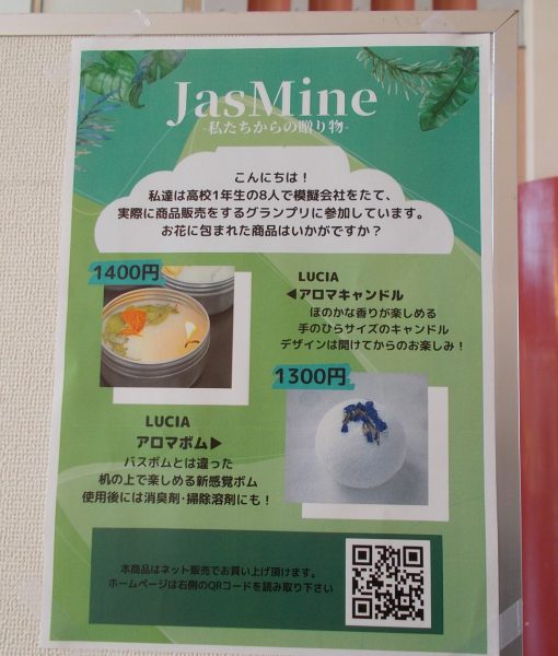 本校の高校生たちが、模擬企業を立ち上げました。社名「ジャスミン」、ロスフラワーを活用したアロマ商品を独自に開発・製造し、(続きを読む)
