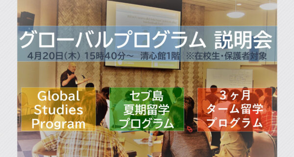今年度から本校では新たに3つのグローバル教育プログラムが始まります。 ①Global Studies Progra(続きを読む)